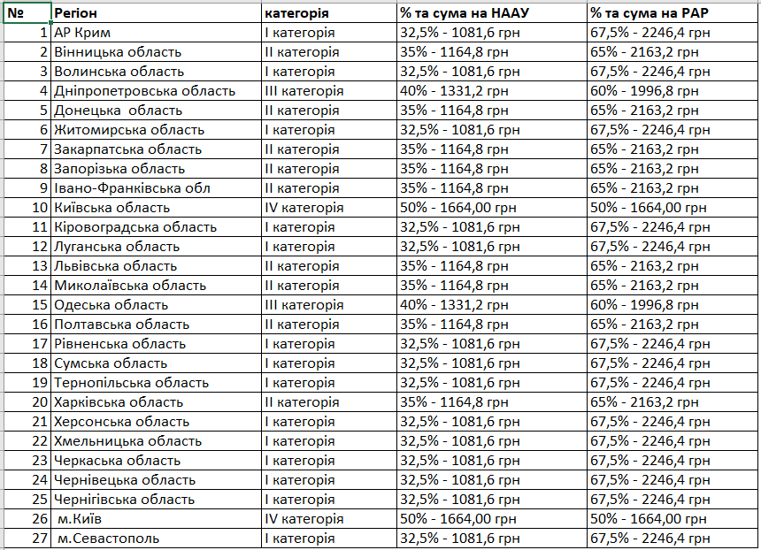 Він розподіляється між НААУ і радою адвокатів регіону відповідно до категорії, що враховує кількість діючих адвокатів РАР: